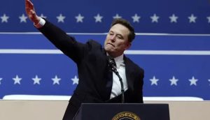প্রতিবেদনে বলা হয়েছে, ওয়াশিংটনে আয়োজিত ওই অভিষেক অনুষ্ঠানে এক্স, স্পেসএক্স এবং টেসলার প্রধান নির্বাহী মাস্ক যখন মঞ্চে ওঠেন, তখন তাকে বেশ উচ্ছ্বসিত দেখা যায়। একপর্যায়ে তিনি এক বিশেষ অঙ্গভঙ্গি করেন। তিনি ডান হাত বুকের বাম পাশে রাখেন, তারপর সেই হাত ওপরে ছুড়ে দেন। তিনি পরপর দুইবার এই ভঙ্গি করেন।