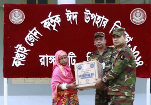 কাপ্তাই প্রতিনিধি: রাংগামাটি রিজিয়নের কাপ্তাই জোন(অটল ছাপ্পান্ন) আয়োজনে কাপ্তাই জোন সদরে পবিত্র ঈদ উল আযহা উপলক্ষে স্থানীয় গরীব এতিম অসহায়ের মধ্যে ঈদ উপহার সামগ্রী বিতরন করা হয়। কাপ্তাই জোনের ভারপ্রাপ্ত জোন কমান্ডার মেজর ফয়েজ আহমদ, পিএসসি ঈদ উপহার সামগ্রী বিতরন করে। ঈদ উপহার সামগ্রী হিসেবে গরিব অসহায় পরিবারের মধ্যে চাল, ডাল, চিনি, আটা, তৈল, লবন ও চা পাতা বিতরন করা হয়। ঈদ উপহার সামগ্রী বিতরনের সময় কাপ্তাই জোনের ভারপ্রাপ্ত জোন কমান্ডার স্থানীয় গরীব, এতিম অসহায়দের সাথে কুশল বিনিময় করেন এবং অগ্রীম ঈদের শুভেচ্ছা জানান।