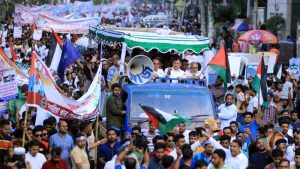 ফিলিস্তিনের পক্ষে সংহতি জানিয়ে কর্মসূচিতে অংশ নিয়ে ভাঙচুর ও লুটপাটকারীদের বিষয়ে হুঁশিয়ারি দেন বিএনপি নেতা নজরুল ইসলাম খান। তিনি বলেন, যারা বিশৃঙ্খলা সৃষ্টি করবে, তারা ইসরায়েলের পক্ষে কাজ করছে বলেই মনে করব। তাদের প্রতিহত করতে হবে, তবে কোনোভাবেই মারপিট নয়—পুলিশের হাতে তুলে দিতে হবে।