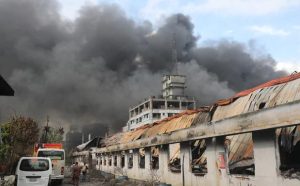 নারায়ণগঞ্জের রূপগঞ্জের রূপসী এলাকায় লুটপাটের সময় গাজী টায়ার কারখানায় দেওয়া আগুন ২০ ঘণ্টায়ও নেভেনি। গতকাল রোববার রাত নয়টায় লাগা আগুন আজ সোমবার সন্ধ্যা পর্যন্তও জ্বলতে দেখা গেছে। রোববার দুপুরে কারখানাটিতে শুরু হওয়া লুটপাট গতকাল বিকেল পাঁচটা পর্যন্ত পুরোপুরি থামেনি। ফায়ার সার্ভিস অ্যান্ড সিভিল ডিফেন্সের পরিচালক (ঢাকা) লেফটেন্যান্ট কর্নেল রেজাউল করিম বলেন, কারখানাটির একটি ছয়তলা ভবনে এখনো আগুন জ্বলছে। আধুনিক সব সরঞ্জাম ব্যবহার করে আগুন নেভানোর চেষ্টা চলছে। আগুন আর ছড়ানোর কোনো শঙ্কা নেই। কারখানায় থাকা টায়ার প্রস্তুতকারক নানা দাহ্য পদার্থের কারণে আগুন নেভাতে সময় লাগছে। আগুন পুরোপুরি নেভানোর পর কারখানার ভেতরে নিখোঁজ ব্যক্তিদের সন্ধান করা হবে।এদিকে সোমবার বিকেলেও কারখানার আশপাশে গাজী টায়ারসহ বিভিন্ন স্থাপনায় দুর্বৃত্তদের লুটপাট করতে দেখা গেছে। প্রায় ৪৫ একর জমির ওপর স্থাপিত কারখানাটির সামনে পুলিশ, সেনাবাহিনী ও শিক্ষার্থীদের অবস্থানের কারণে কারখানার মূল অংশে লুটপাট হচ্ছে না। তবে সুবিশাল এই কারখানার চারপাশের বিভিন্ন অরক্ষিত অংশে লুটপাট চলছে। তাঁরা কারখানা থেকে বিভিন্ন যন্ত্রাংশ, স্টিল, প্লাস্টিক ও তামা লুট করে নিয়ে যাচ্ছেন।