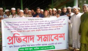 কাপ্তাই প্রতিনিধিঃ ঐতিহ্যবাহী চিৎমরম মুসলিম পাড়া জামে মসজিদ মোতায়াল্লী বিরোদ্বে অপপ্রচারের প্রতিবাদে সমাবেশ করেছে এলাকাবাসী। শুক্রবার (১৩সেপ্টেম্বর) দুপুর ২টায় মুসলিম পাড়া জামে মসজিদ ওয়াকফ্ এ্যাসেস্ট মসজিদ প্রাঙ্গনে প্রতিবাদ মিথ্যা ও অপপ্রচার এর বিরোদ্বে প্রতিবাদ সামাবেশ করা হয়। ওয়াকফ এস্টেটের (ইসি-২২৪৮২) গণপ্রজাতন্ত্রী বাংলাদেশ সরকারের ওয়াকফ প্রশাসক কর্তৃক নিযুক্ত অফিসিয়াল মোতয়াল্লী বিশিষ্ট দানবীর আলহাজ্ব আহামদ ছৈয়দের নামে সামাজিক যোগাযোগ মাধ্যমসহ বিভিন্ন অনলাইন পোর্টালে মিথ্যা, বানোয়াট খবর প্রকাশ করার প্রতিবাদে এক সমাবেশের আয়োজন করা হয়। মুসলিম পাড়া জামে মসজিদের মোতায়াল্লি হাজী আহমদ ছৈয়দ এর সভাপতিত্বে বক্তব্য রাখেন চিৎমরম মুসলিম পাড়া সমাজ পরিচালনা কমিটির সাধারন সম্পাদক মো. জসীম উদ্দীন, মসজিদ কমিটির সহ-সভাপতি চিৎমরম ইউপি’র সাবেক সদস্য মো. রাজ্জাক, মসজিদ কমিটির যুগ্ন মোতয়াল্লী মো. আব্দুর রহিম বক্তব্য রাখেন। প্রতিবাদ। সমাবেশে বক্তব্য বলেন, মসজিদ কমিটির মোতয়াল্লি আহমদ ছৈয়দের বিরুদ্ধে যেসব তথ্য প্রচার করা হয়েছে সব মিথ্যা, বানোয়াট এবং উদ্দেশ্য প্রণোদিত। উক্ত মিথ্যা সংবাদের তীব্র নিন্দা ও প্রতিবাদ জানানো হয়। তারা বলেন, এধরনের সংবাদ প্রচারের জন্য অবিলম্বে তাদের ক্ষমা চাইতে হবে। নইলে তাদের বিরুদ্ধে এলাকাবাসী কঠোর পদক্ষেপ গ্রহন করবে বলে হুঁশিয়ারি প্রদান করা হয়। মোতায়াল্লী আলহাজ্ব আহমদ ছৈয়দ বলেন মসজিদের সকল কার্যক্রম সরকারি নিয়ম অনুযায়ী কার্যক্রম পরিচালো হয়।এখানে অনিয়মের কোন সুযোগ নেই।তিনি এ ধরনের অপপ্রচার হতে সকলকে বিরত থাকার আহবান জানান।