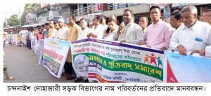 মো. আয়ুব মিয়াজী, চন্দনাইশঃ দোহাজারী সড়ক বিভাগের নাম পরিবর্তনের প্রতিবাদে দোহাজারী নাগরিক কমিটির উদ্যোগে চট্টগ্রাম কক্সবাজার মহাসড়কে দোহাজারী সদর এলাকায় সর্বস্তরের মানুষের উপস্থিতিতে মানববন্ধন, বিক্ষোভ মিছিল ও সড়ক অবরোধ অনুষ্ঠিত হয়।