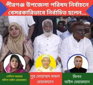 রংপুর জেলার পীরগঞ্জ উপজেলায় ২১শে মে ২০২৪ ইং রোজ (মঙ্গলবার) উপজেলা পরিষদ নির্বাচন সুষ্ঠুভাবে অনুষ্ঠিত হয়েছে। বেসরকারি ভাবে ফলাফল জানা গেছে, সাবেক সংসদ প্রাক্তন চেয়ারম্যান নূর মোহাম্মদ মন্ডল আনারস প্রতীকে ৪৪ হাজার ৫১৩ ভোট পেয়ে তৃতীয় বারের মত উপজেলা চেয়ারম্যান হয়েছেন। তার নিকটতম প্রতিদ্বন্দ্বী সাবেক আওয়ামী লীগ সাধারণ সম্পাদক মোকাররম হোসেন জাহাঙ্গীর চৌধুরী ঘোড়া প্রতীকে ৩৪ হাজার ৬৬১ ভোট পেয়েছেন ও উপজেলা জাতীয় পার্টির সাধারণ সম্পাদক নূরে আলম মিয়া জাদু লাঙ্গল প্রতীকে ১৫ হাজার ৩৮৪ ভোট পেয়েছেন। ভাইস চেয়ারম্যান পদে নির্বাচিত হয়েছেন সাবেক ভিপি ও প্রাক্ষণ চেয়ারম্যান শফিউর রহমান মিলন তালা প্রতীকে ৪১ হাজার ৬৬১ ভোট। নিকটতম প্রতিদ্বন্দী আবু আজাদ বাবলু মাষ্টার চশমা প্রতীকে ৩৬ হাজার ৭ ভোট। মহিলা ভাইস চেয়ারম্যান হিসেবে নির্বাচিত হয়েছেন শিক্ষিকা সেলিনা আকতার শিখা হাঁস প্রতীকে সর্বোচ্চ ৫২ হাজার ৯৮১ ভোট পেয়েছেন। নিকটতম প্রতিদ্বন্দ্বী রওশন আরা রীনা কলস প্রতীকে ৩২ হাজার ৯০৩ ভোট পেয়েছেন। উল্লেখ্য, ভোটের দিন পীরগঞ্জে আবহাওয়া অনুকূলে ছিল। স্থানীয় প্রশাসন ভোট গ্রহণে সুষ্ঠু পরিবেশ সৃষ্টি করেছিল। ১২৩ ভোট কেন্দ্রে নিরাপত্তায় নিয়োজিত ছিলেন পুলিশ আনসার ভিডিপি সদস্যগন, ছিলেন ম্যাজিস্ট্রেট। নির্বাচন সুষ্ঠু করতে সরকারের বিভিন্ন পর্যায়ের নজরদারি ছিল জোরালো। ভোটগ্রহণের কর্মকর্তারা আন্তরিকতার সহিত দায়িত্ব পালন করেছে।