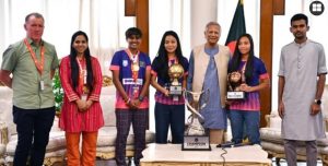 শনিবার (২ নভেম্বর) সকাল ১১ টায় ঢাকায় রাষ্ট্রীয় অতিথি ভবন যমুনায় সাফ চ্যাম্পিয়নশিপ জয়ী বাংলাদেশ নারী ফুটবল দলকে সংবর্ধনা প্রদান করেছেন প্রধান উপদেষ্টা অধ্যাপক ড. মুহাম্মদ ইউনূস।এ সময় নারী ফুটবল দলের সদস্যরা তাদের স্বপ্ন ও খেলোয়াড় জীবনের প্রতিদিনের সংগ্রামের কথা প্রধান উপদেষ্টার সামনে তুলে ধরেন। অধ্যাপক ইউনূস বিজয়ী খেলোয়াড়দের বিভিন্ন দাবি ও কথাগুলো মনোযোগ দিয়ে শোনেন এবং অগ্রাধিকারভিত্তিতে সমাধানের প্রতিশ্রুতি দেন।