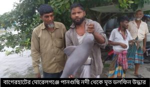 বাগেরহাটের সুন্দরবনের উপকূলীয় পানগুছি নদী থেকে মৃত ডলফিন উদ্ধার