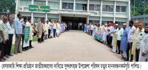 গাইবান্ধা প্রতিনিধিঃ বৈষম্য দূরীকরণের মাধ্যমিক স্তরের বেসরকারি শিক্ষা প্রতিষ্ঠান জাতীয়করণ, জাতীয়করণের পূর্ব পর্যন্ত শিক্ষা প্রশাসনের বিভিন্ন পদে সরকারি স্কুলের শিক্ষকদের পদায়ন বন্ধ রাখা ও শিক্ষা সংস্কার কমিটি গঠনের দাবিতে গাইবান্ধার সুন্দরগঞ্জ উপজেলায় মানববন্ধন কর্মসূচি পালন এবং প্রধান উপদেষ্টা ও সচিব বরাবর স্মারকলিপি প্রদান করা হয়েছে। উপজেলা মাধ্যমিক শিক্ষা অধিদপ্তর ও বিভিন্ন শিক্ষক সংগঠনের আয়োজনে মঙ্গলবার উপজেলা পরিষদ চত্বরে মানববন্ধন কর্মসূচি পালিত হয়। এতে উপজেলা বিভিন্ন বেসরকারি কলেজ, মাধ্যমিক স্কুল ও মাদ্রাসার কমপক্ষে ৩০০জন শিক্ষক উপস্থিত ছিলেন। মানববন্ধন চলাকালিন সময়ে বক্তব্য রাখেন, প্রধান শিক্ষক মো. আব্দুল মান্নান আকন্দ, সুপার মাওলানা মো. ইদ্রিস আলী, মাওলানা মো. রফিকুল ইসলাম, সহকারি সহকারি প্রধান শিক্ষক মো. মাহমুদুল ইসলাম প্রামানিক প্রমূখ। বক্তাগণ বলেন, একই শিক্ষাগত যোগ্যতা, একই বই পড়ানো, একই বোর্ডের অধীনে পরীক্ষা অথচ সরকারি বেসরকারি নাম দিয়ে আর্থিক ও সামাজিক মর্যাদার মধ্যে বিরাট বৈষম্য তৈরি করা হয়েছে। যা শিক্ষার গুণগতমান উন্নয়নে প্রধান অন্তরায়। দেশের ৯৭ ভাগ বেসরকারি শিক্ষা প্রতিষ্ঠান জাতীয়করণ এখন সকল শিক্ষক-কর্মচারীর প্রাণের দাবি। পরে উপজেলা নিবার্হী অফিসারের মাধ্যমে সরকার প্রধান উপদেষ্টা এবং শিক্ষা সচিব বরাবর স্মারকলিপি প্রদান করা হয়।