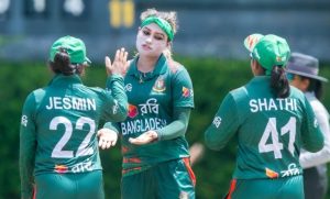 বিশ্বকাপের আগে নিজেদের প্রস্তুত করছে শ্রীলংকা সফরে গেছে বাংলাদেশ ‘এ’ দল। আর সেই সফরে পাঁচ ম্যাচ টি-টোয়েন্টি সিরিজে প্রথমটিতে দাপুটে জয় তুলে সিরিজে ১-০ তে লিড নিয়েছে বাংলাদেশের নারীরা। কলম্বোর পি সারা ওভালে বৃহস্পতিবার শ্রীলংকা নারী ‘এ’ দলকে ১১২ রানে থামিয়ে দেয় বাংলাদেশ। পরে লক্ষ্য তাড়া করতে নেমে তা ১৮.৫ ওভারে ৭ উইকেট হাতে রেখে টপকে যায় বাংলাদেশ দল। এর আগে দুই দলের দ্বিতীয় পঞ্চাশ ওভারের ম্যাচটিও বৃষ্টির কারণে ২০ ওভারে নেমে আসে। ৭ উইকেটে জেতা ওই ম্যাচের দুই কারিগর দিলারা আক্তার ও নিগার সুলতানাকে এদিন বিশ্রাম দেয় বাংলাদেশ। দলের দুই তারকা না থাকলেও তাদের অনুপস্থিতি বুঝতে দেননি জাহানারা-সোবাহানারা।