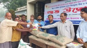 গাইবান্ধা প্রতিনিধিঃ গাইবান্ধার সুন্দরগঞ্জ উপজেলায় কৃষি প্রণোদনা কর্মসূচির অংশ হিসেবে ক্ষুদ্র ও প্রান্তিক কৃষকদের মাঝে বিনামূল্যে বীজ ও সার বিতরণ কার্যক্রম শুরু হয়েছে। উপজেলা কৃষি অধিদপ্তরের আয়োজনে বৃহস্পতিবার উপজেলা কৃষক প্রশিক্ষণ চত্বরে কৃষকদের মাঝে বীজ ও সার বিতরণ কার্যক্রমের উদ্বোধন করেন উপজেলা নিবার্হী অফিসার মো. তরিকুল ইসলাম। এ সময় উপস্থিত ছিলেন উপজেলা কৃষি অফিসার মো. রাশিদুল কবির, কৃষি সম্প্রসারণ অফিসার মো. মিজানুর রহমান, এসএওপিপি মো. সাদেক হোসেন, উপজেলা প্রেসক্লাব সভাপতি মো. শাহজাহান মিঞা প্রমূখ। পরে কৃষকদের মাঝে বীজ ও সার বিতরণ করেন অতিথিবৃন্দ। জানা গেছে, চলতি আমন মৌসুমে উপজেলার একটি পৌরসভা ও পনেরটি ইউনিয়নের ২ হাজার ৫৫০ জনকে ধান ও ১৬০ জনকে পেঁয়াজ বীজ এবং সার বিতরণ করা হবে।