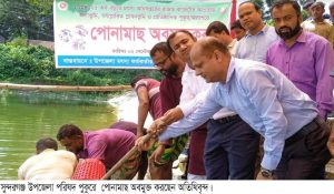 গাইবান্ধা প্রতিনিধিঃ গাইবান্ধার সুন্দরগঞ্জ উপজেলায় চলতি ২০২৪-২৫ অর্থ বছরে মৎস্য অধিদপ্তরের রাজস্ব বাজেটের আওতায় উপজেলার ১৫ টি জলমহল, প্লাবনভুমি ও প্রাতিষ্ঠানিক জলাশয়ে ৪১৫ কেজি পোনামাছ অবমুক্ত ও বিতরণ করা হয়েছে। উপজেলা মৎস্য অধিদপ্তরের আয়োজনে উপজেলা পরিষদ পুকুরে সোমবার পোনামাছ বিতরণ কার্যক্রম উদ্বোধন করা হয়। এতে প্রধান অতিথি হিসেবে উপস্থিত ছিলেন গাইবান্ধা জেলা মৎস্য অফিসার মোহাম্মদ আবদুর রাশেদ, উপজেলা নিবার্হী অফিসার মোঃ তরিকুল ইসলাম, উপজেলা মৎস্য অফিসার মোঃ তারিকুল ইসলাম সাবু, উপজেলা যুব উন্নয়ন অফিসার মো. জাফর আহমেদ লস্কর, উপজেলা আইসিটি সহকারি প্রোগ্রামার কৃষ্ণ চন্দ্র সরকার প্রমূখ। পরে পোনামাছ অবমুক্ত করা হয়।