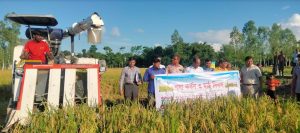 গাইবান্ধা প্রতিনিধিঃ গাইবান্ধার সুন্দরগঞ্জ উপজেলায় আউশ ধানের শস্য কর্তন ও মাঠ দিবস পালন করা হয়েছে। চলতি ২০২৩-২৪ অর্থবছর খরিফ-১ মৌসুমে কৃষি প্রণোদনা কর্মসূচির আওতায় আউশ ধানের (উফশী) সমলয় চাষাবাদ (Synchronize Cultivation) কার্যক্রমের ব্লক প্রদর্শনীতে কম্বাইন্ড হারভেস্টার যন্ত্রের মাধ্যমে কঞ্চিবাড়ি ইউনিয়নের কঞ্চিবাড়ি ব্লকে ৫১ জন কৃষক ২০ একর জমিতে আবাদকৃত শস্য কর্তন ও মাঠ দিবস অনুষ্ঠিত হয়েছে। গতকাল মঙ্গলবার উপজেলা প্রশাসন ও কৃষি অধিদপ্তরেরর আয়োজনে উপজেলা অফিসার রাশিদুল কবিরের সভাপতিত্বে আলোচনা সভা অনুষ্ঠিত হয়। এতে বক্তব্যে রাখেন, গাইবান্ধা কৃষি অধিদপ্তরের উপ-পরিচালক মো. খোরশেদ আলম, গাইবান্ধা জুনিয়র মনিটরিং এণ্ড রির্পোটিং স্পেশালিষ্ট প্রকল্পের (SACP, RAINS) মো. আজিজুর রহমান, কঞ্চিবাড়ি ইউপি চেয়ারম্যান মনোয়ার আলম, কৃষি সম্প্রসারণ কর্মকর্তা মিজানুর রহমান, উপজেলা প্রেসক্লাবের সভাপতি শাহজাহান মিঞা, কৃষক সাদা মিয়া প্রমূখ। অনুষ্ঠানটি সঞ্চালনা করেন উপ-সহকারী উদ্ভিদ সংরক্ষণ কর্মকর্তা সাদেক হোসেন। কঞ্চিবাড়ি ইউনিয়নের কৃষক মাহাবুর রহমান বলেন, প্রথম বার তিনি ব্রি-৯৮ আউশ ধান চাষ করে ২ বিঘা জমিতে ৩২ মন ধান উৎপাদন করতে সক্ষম হয়েছে। তার দেখাদেখিতে আগামীতে এই এলাকায় অনেক কৃষক আউশ ধান চাষ করার আশাবাদ ব্যাক্ত করেছে।