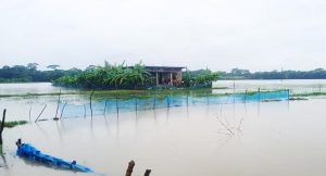 বাগেরহাট প্রতিনিধিঃ বঙ্গোপসাগরে সৃষ্ট লঘুচাপ ও বৈরী আবহাওয়ার প্রভাবে ৪ দিনের টানা ভারি বর্ষণে বিশ্বের বৃহত্তম ম্যানগ্রোভ বন সুন্দরবনের উপকূলীয় বাগেরহাটের মোরেলগঞ্জের পানগুছি নদী তীরবর্তী পৌরসভাসহ কমপক্ষে ৪০টি গ্রামের মানুষ পানিবন্দি হয়ে পড়েছেন। ডুবে গেছে ৩ শতাধিক মৎস্য ঘের। পানিতে নিমজ্জিত হয়েছে ১ হাজার হেক্টর ফসলি জমির রোপা আমন ধানের ক্ষেত।হুমকির মুখে পড়ছে রাস্তা-ঘাট, শিক্ষা প্রতিষ্ঠান, বেড়িবাঁধসহ বেশ কিছু বাড়িঘর। এনিয়ে এই অঞ্চল ৪বার প্লাবনের কবলে পড়লো।তাই শহর রক্ষা বাঁধসহ সন্ন্যাসী হয়ে ঘষিয়াখালী পর্যন্ত নদীর দু’পাড়ের স্থায়ী ভেড়িবাঁধের দাবি জানিয়েছেন স্থানীয়রা। সরেজমিনে দেখা গেছে, উপকূলীয় অঞ্চল উপজেলার ১৬টি ইউনিয়নসহ পৌরসভায় গত ৪ দিন ধরে টানা বৃষ্টি জোয়ারে অতিরিক্ত পানিতে পানগুছি নদীর তীরবর্তী মোরেলগঞ্জ পৌর শহরের ফেরীঘাট সংলগ্ন এলাকা, বারইখালীর কাশ্মীর, বলইবুনিয়ার শ্রেণীখালী, বহরবুনিয়ার ফুলহাতা, ঘষিয়াখালী, মোরেলগঞ্জ সদর ইউনিয়নের গাবতলা গ্রামের নতুন করে আধা কিলোমিটার ধসে গেছে।হোগলাবুনিয়ার বদনীভাঙ্গা, সানকিভাঙ্গা, পাঠামারা, খাউলিয়া বাজারের ব্রিজসহ হুমকির মুখে অম্বিকা চরণ লাহা পাইলট উচ্চ বিদ্যালয়, বদনীভাঙ্গা আর্দশ মাধ্যমিক বিদ্যালয় ৮০নম্বর বি পাঠামারা সরকারি প্রাথমিক বিদ্যালয়, বহরবুনিয়ার এসবি মাধ্যমিক বিদ্যালয় নদীর তীরবর্তী বিভিন্ন শিক্ষা প্রতিষ্ঠান।