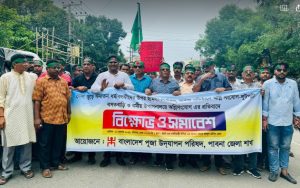 পাবনা প্রতিনিধি: পাবনায় বাংলাদেশের বিভিন্ন অঞ্চলে মন্দির-বাড়িঘরে ভাঙচুর, অগ্নিসংযোগ, লুটপাট ও নির্যাতনের প্রতিবাদে বিক্ষোভ মিছিল করেছে হিন্দু সম্প্রদায়ের লোকজন। বেলা ১১টায় আব্দুল হামিদ রোডে বাংলাদেশ পূজা উদযাপন পরিষদ পাবনা জেলা শাখার আয়োজনে এ বিক্ষোভ মিছিল অনুষ্ঠিত হয়।