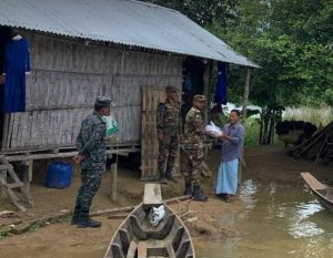 কাপ্তাই প্রতিনিধি: রাঙ্গামাটি রিজিয়ন কর্তৃক কাপ্তাই উপজেলার ১০আর ই ব্যাটালিয়ন বন্যায় ক্ষতিগ্রস্ত পরিবারের মাঝে ত্রাণ সামগ্রী বিতরণ করেছে।রবিবার (২৫আগস্ট) সকাল ১১টা হতে সাড়ে ১২টা পযন্ত কাপ্তাই জীবতলী ইউনিয়নের হাজাছড়ি আনসার ক্যাম্পের দায়িত্বপূর্ণ এলাকায় বন্যায় ক্ষতিগ্রস্তদের মাঝে ত্রাণ সামগ্রী বিতরণ করা হয়। সেনাপ্রধানের দিকনির্দেশনায় ১০আর ই ব্যাটালিয়নের অধিনায়ক লেঃকর্ণেল মুহাম্মদ সোহেল পিএসসি সার্বিক তত্বাবধানে এ ত্রাণ বিতরণ করা হায়। ক্ষতিগ্রস্তদের মাঝে ত্রাণ বিতরণ করেন ১০ আর ই ব্যাটালিয়নের এ্যাডজুটেন্ট ক্যাপ্টেন রিয়াদ মাহামুদ উৎস। তিনি বলেন ব্যাটালিয়নের পক্ষ হতে দুর্যোগকালীন সময়ে সুবিধা বঞ্চিত মানুষের জন্য ত্রাণ সহায়তা অব্যাহত থাকবে।