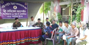 কাপ্তাই প্রতিনিধিঃরাঙ্গামাটি রিজিয়নের কাপ্তাই উপজেলার ১০আর ই ব্যাটালিয়নে আয়োজনে অসহয় দুস্থদের মাঝে বিনামূল্যে চিকিৎসা সেবা দেয়া হয়েছে। বৃহস্পতিবার (২৯আগস্ট) সকাল হতে দিনব্যাপী মগবান ইউনিয়নের বরাদম আর্মি পোষ্টের দায়িত্নপূর্ণ দূর্গম এলাকা দুলুছড়ি, কুকুজ্যাছড়ি,কেরকাটাতে বসবাসকারী অসহায় দরিদ্র, গরীব জনসাধারণ ও শিশুদের মাঝে বিনামূল্যে স্বাস্থ্য সেবা প্রদান করা হয়।এবং প্রয়োজনীয় ঔষধ বিতরণ করা হয়।সেনাপ্রধানের দিক নির্দেশনায় ১০আর ই ব্যাটালিয়নের অধিনায়ক লেঃকর্ণেল মুহাম্মদ সোহেল পিএসসি উক্ত চিকিৎসা ক্যাম্পেইন উপস্থিত ছিলেন।সেবা প্রদান করেন ১০আর ই ব্যাটালিয়নের মেডিকেল অফিসারগন। অধিনায়ক বলেন ভবিষ্যতে এরকম সুবিধা বঞ্চিত মানুষের জন্য চিকিৎসা সেবা অব্যাহত থাকবে।