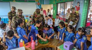 বান্দরবান প্রতিনিধিঃ “রহস্য উন্মোচনে বিজ্ঞান” এই প্রতিপাদ্যকে সামনে রেখে বান্দরবান ক্যান্টনমেন্ট পাবলিক স্কুল ও কলেজে অনুষ্ঠিত হলো বিজ্ঞান মেলা ২০২৪। এবারের বিজ্ঞান মেলায় ৩য় থেকে দ্বাদশ শ্রেণীর প্রায় ৬০০ জন শিক্ষার্থী ১২০টি বিজ্ঞান প্রজেক্ট নিয়ে মেলায় অংশগ্রহণ করেছে। বুধবার (১৮ সেপ্টেম্বর) সকালে বান্দরবান শহরে ক্যান্টনমেন্ট পাবলিক স্কুল ও কলেজ প্রাঙ্গনে প্রধান অতিথি হিসেবে উপস্থিত থেকে মেলার উদ্বোধন করেন বান্দরবান ৬৯ পদাতিক ব্রিগেড-এর কমান্ডার ব্রিগেডিয়ার জেনারেল মোহাম্মদ মেহেদী হাসান। উদ্বোধন শেষে প্রধান অতিথি শিক্ষা প্রতিষ্ঠানটির বিভিন্ন শিক্ষার্থীদের উপস্থাপনকৃত নতুন নতুন বিজ্ঞান প্রজেক্ট পরিদর্শন করেন এবং শিক্ষার্থীদের সাথে বিজ্ঞানভিত্তিক বিভিন্ন বিষয় নিয়ে আলোচনা করেন। এসময় বিশেষ অতিথি হিসেবে উপস্থিত ছিলেন ৬৯ পদাতিক ব্রিগেড এর কমান্ডার ব্রিগেডিয়ার জেনারেল মোহাম্মদ মেহেদী হাসান-এর সহধর্মীনি মাহমুদা আক্তার। বিজ্ঞান মেলায় এসময় বান্দরবান ক্যান্টনমেন্ট পাবলিক স্কুল ও কলেজ এর অধ্যক্ষ লে.কর্ণেল মোহাম্মদ শাহজাহান সিরাজ ভূঁইয়া, বান্দরবান ক্যান্টনমেন্ট পাবলিক স্কুল ও কলেজ এর বিভিন্ন শিক্ষক-শিক্ষিকা, ছাত্র-ছাত্রী এবং সেনাবাহিনীর বিভিন্ন পদ মর্যাদার কর্মকর্তারা উপস্থিত ছিলেন। আয়োজকেরা জানান, রহস্য উন্মোচনে বিজ্ঞান এই প্রতিপাদ্যকে সামনে রেখে শিক্ষার্থীদের মেধা বিকাশের লক্ষ্যে এবারে দিনব্যাপী বিজ্ঞান মেলা অনুষ্ঠিত হচ্ছে আর এবারের বিজ্ঞান মেলায় ৩য় থেকে দ্বাদশ শ্রেণীর প্রায় ৬০০ জন শিক্ষার্থী ১২০টি বিজ্ঞান প্রজেক্ট নিয়ে মেলায় অংশগ্রহণ করেছে। প্রদর্শিত প্রজেক্টসমূহের মধ্যে উল্লেখযোগ্য হল রোবটিক্স ও কৃত্তিম বুদ্ধিমত্তার ব্যবহার, পরিবেশ বান্ধব জ্বালানী ও বিদ্যুৎ উৎপাদন ব্যবস্থা, শক্তির অপচয় রোধের ব্যবস্থা, অপ্রয়োজনীয় বর্জ্য পদার্থকে পরিবেশবান্ধব উপায়ে রিসাইকেল করার পদ্ধতি, বাসা বাড়িতে বা শিল্প কারখানায় গ্যাস লিকেজ শনাক্ত করার পদ্ধতি, স্বয়ংক্রিয় পদ্ধতিতে অগ্নিকাণ্ড নিয়ন্ত্রণ প্রভৃতি। এছাড়াও নার্সারি থেকে দ্বিতীয় শ্রেণির শিক্ষার্থীদের ক্ষুদে বিজ্ঞানী কর্নার নিয়ে তারাও অংশগ্রহণ করেছে। প্রতিযোগিতা শেষে ৭টি গ্রুপে বিজয়ীদের মাঝে পুরস্কার প্রদান করা হয়।