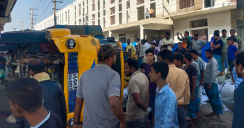 চট্টগ্রাম নগরের পতেঙ্গা এলাকায় সিমেন্ট ক্রসিং থেকে পতেঙ্গামুখী-কর্ণফুলী ইপিজেড ক্রসিংয়ের দক্ষিণ পাশে চলন্ত অবস্থায় জুট…