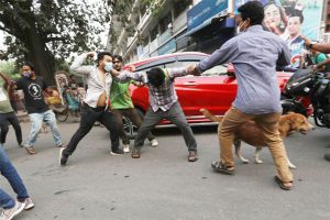 ভারতীয় প্রধানমন্ত্রী নরেন্দ্র মোদির বাংলাদেশে আগমনের বিরোধীতা করে বিক্ষোভ কর্মসূচি পালনকালে প্রগতিশীল ছাত্র জোটের কর্মীদের ওপর হামলা চালিয়েছে ছাত্রলীগ। মঙ্গলবার বিকেলে এ হামলার ঘটনায় ছাত্র জোটের কর্মী ও সাংবাদিকসহ অন্তত ২০ জন আহত হয়েছে। পূর্বনির্ধারিত কর্মসূচি অনুযায়ী ছাত্র জোটের কর্মীরাা টিএসসি থেকে মিছিল নিয়ে শাহবাগ ঘুরে ফের টিএসসিতে আসে। এসময় আগে থেকেই অবস্থান নেয়া ছাত্রলীগের কর্মীরা বিক্ষোভকারীদের কাছ থেকে মোদির কুশপুত্তলিকা কেড়ে নেয়। এরপর তারা কাগজ পুড়িয়ে প্রতিবাদ জানায়। এরই মাঝে ছাত্রলীগের কর্মীদের সাথে হাতাহাতি শুরু হয়। একপর্যায়ে ডাবের খোসা, মোটরসাইকেলের হেলমেট, ইট-লাঠি দিয়ে দুই পক্ষ হামলা-পাল্টা হামলা করে। এরপর ছাত্রলীগের কর্মীরা এগিয়ে গিয়ে ছাত্র জোটের কর্মীদের উপর হামলা করে।